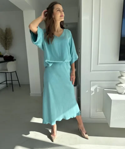 Poczuj powiew letniej świeżości w naszej sukience typu slip dress. Ten minimalistyczny, a zarazem niezwykle zmysłowy model w pięknym odcieniu to absolutny must-have w szafie każdej kobiety, która ceni sobie naturalność połączoną z elegancją.