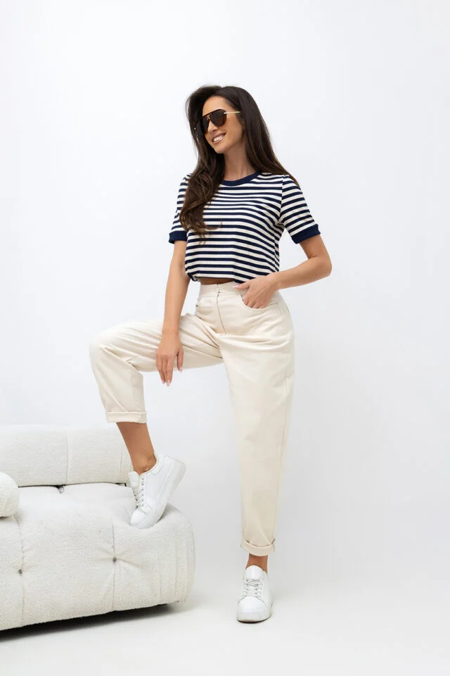 BOPOCO – T-shirt w paski granatowo-beżowe