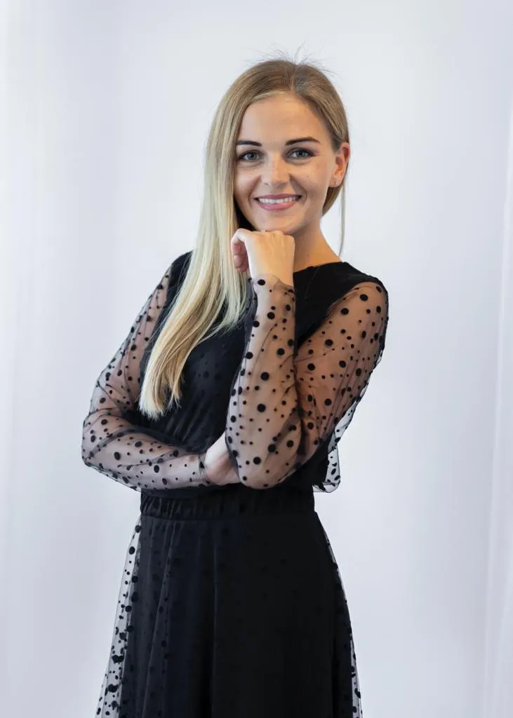 Bluzka z siateczki w kropki. Rękawki bez podszewki, a reszta z przyjemnej w dotyku podszewce.
