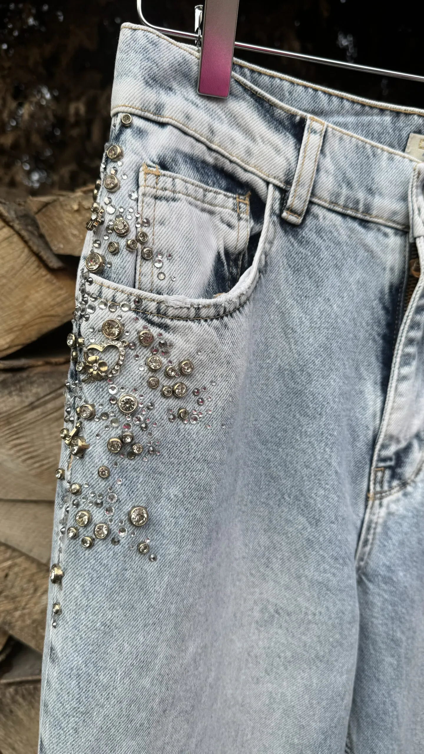 Ozdobione przy kieszeniach aplikacjami.